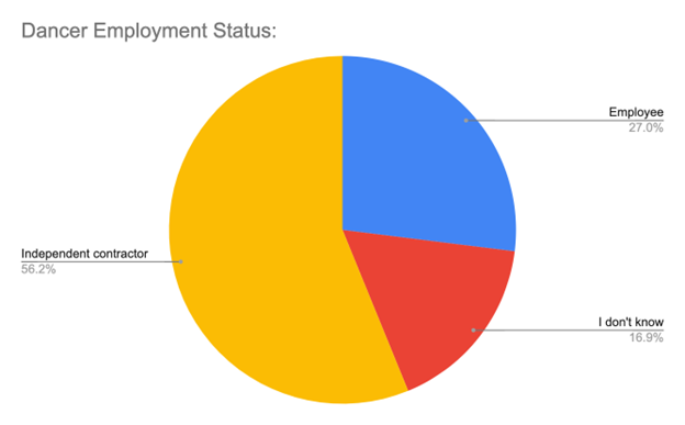 To help dancers and companies understand the survey questions, we tried to be very specific in our language and also give examples of what each scenario meant. For example, we mentioned that employees have their taxes taken out while independent contractors do not.